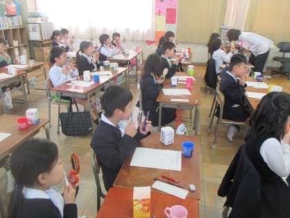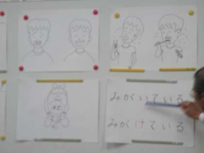 今日は、校医先生からも歯磨きの大切さについてご指導をいただきました。おなじみの自作のイラストで、虫歯予防の必要性をお話ししていただきました。