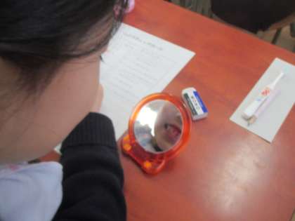 2年生が、歯科衛生士さんに歯磨きの指導を受けました。