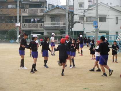 鉛色の寒々とした空で、昨日と比べるとグッと寒く感じる昼休みでしたが、運動場はいつものように元気に遊ぶ子どもたちでいっぱいでした。