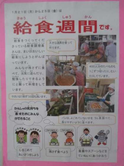 毎日食べている給食について、その意義を考えたり給食づくりにかかわっている方に感謝したりする週間です。