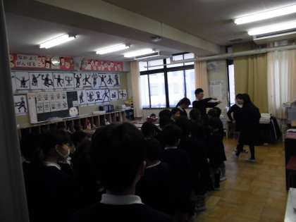 本日は木曜集会。今週は縦割りの教室に分かれて、同じ班のみんなで教室遊びをしました。
