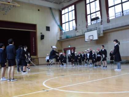 本日は20分休憩の時間に講堂(体育館)でチャレンジ大会がありました。
