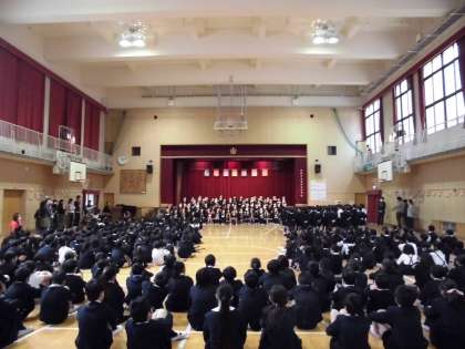 六年生が入場したとき、大きな歓声と拍手が講堂に響き渡りました。