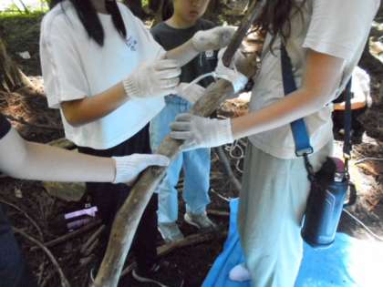 基地づくりの活動です。グループで協力して、様々な発想を活かして思い思いの基地をつくりました。