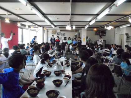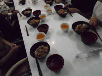 林間学習、最後の食事は牛丼です。この3日間をしっかりかみしめながら、おいしくいただきました。