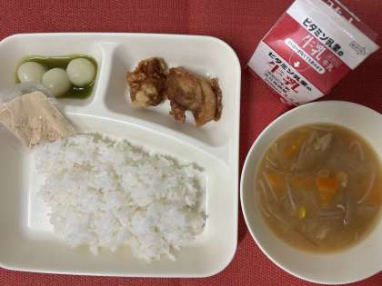 今日の給食は、学校給食献立コンクール優秀賞献立「とり天・どさんこ汁・抹茶団子(きな粉)・ごはん・牛乳」でした。作成者のねらいは、「自分たちの住んでいる日本各地の伝統ある郷土料理を楽しんでもらい、旅行に行った気分になってほしい。」です。