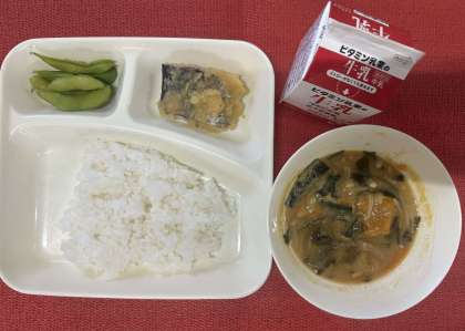 今日の献立は、「さごしのみぞれかけ・かぼちゃのみそ汁・えだまめ・ごはん・牛乳」でした。