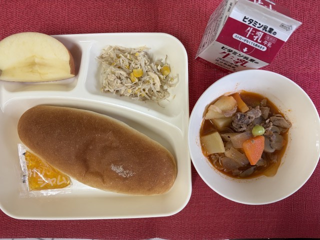 1月20日(火)の給食 公開日 2026/01/21 更新日 2026/01/20 学校生活 今日の給食は、「ケチャップ煮・ささみと野菜のソテー・りんご・コッペパン・みかんジャム・牛乳」でした。 ケチャップ煮は、豚肉・じゃがいも・たまねぎ・にんじん・マッシュルーム、彩りにむきえだまめを使用し、ケチャップなどで味つけした煮ものです。 いいね(0)