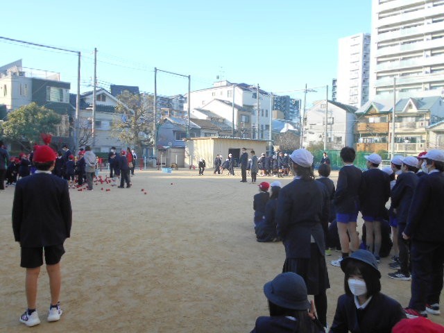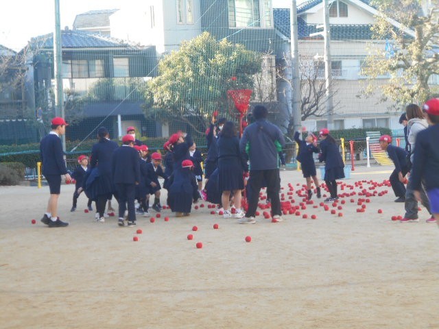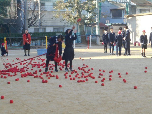 1年生と6年生が運動集会で玉入れをしました。