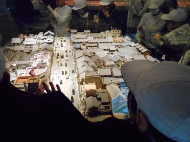 近代の大阪の展示では、明治・大正・昭和の様子の模型や昔の炊飯器などの生活用品について調べました。
