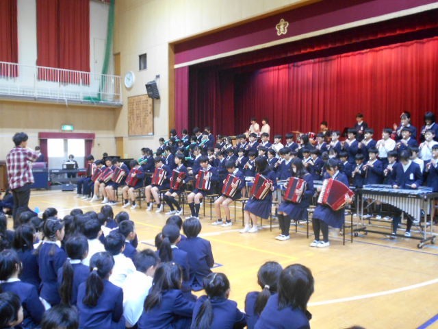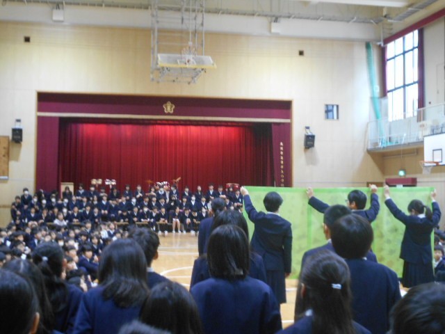6年生からは合奏と雑巾のプレゼントがありました。