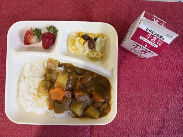 3月17日(火)の給食 公開日 2026/03/17 更新日 2026/03/17 学校生活 今日の給食は、「チキンカレーライス・金時豆と野菜のサラダ・いちご・牛乳」でした。 今日のカレーライスには、『ラッキーにんじん』が入っていましたよ!ラッキーな人は、だれかな? いいね(0)