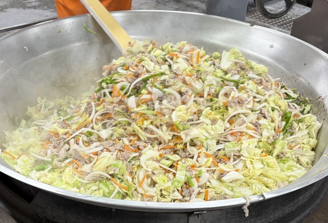 今日の焼きそばは、豚肉・キャベツ・たまねぎ・ピーマン・にんじんを使用した具だくさんのソース味の焼きそばです。