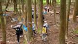 林間学習最後のミッションです。班での基地作りです。森の中にきました。