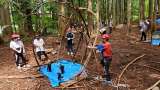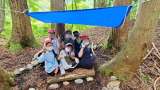 秘密基地は、ブルーシートや、ロープ、木々を使って、皆で工夫して作ります。