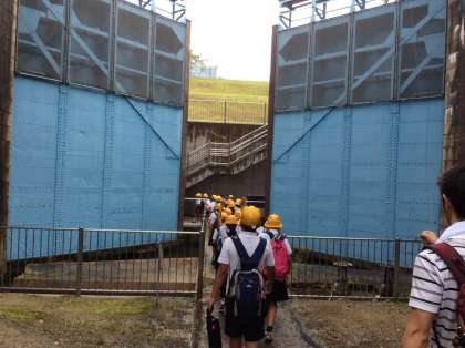 また、毛馬の閘門は、昔の閘門跡を見学してから、現在の閘門の仕組みやポンプ室などを見学しました。