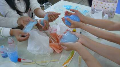 今日は、2回目のクラブ活動でした。1回目は、クラブ編成ということで、部長、副部長を決めたり、1年間の活動計画を立てたりしました。今日は、活動の1回目となりました。科学クラブを覗いてみると、「スライム」を作っていました。手で、こねるのでスライムだらけになってはいるのですが、表情は、とても楽しそうです。上手にスライムが作れてとても満足そうでした。このように、クラブ活動は、異学年の人たちで協力しあって楽しく過ごす貴重な時間です。これからの活動を楽しみにしていてくださいね。