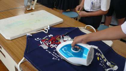 このエプロンを使って、調理実習を行います。素敵なエプロンができるといいですね。