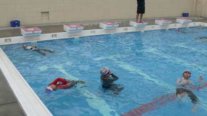 服を着たまま、水の中でどんなに動きにくくなるのか。どうすれば、体力を温存しつつ浮いていられるのかなど、体験をする学習でした。服を着たままでは全然動けない。水に濡れたままなので寒い。こうしたら浮きやすいなど、少しでも服を着たままの水濡れが怖いということを実感できました。