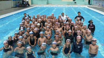 トップアスリートの元選手が、気持ちの入った熱心な指導をしてくれました。水泳が苦手な子ども、泳ぎがそれほど得意でない児童が、少しでも水泳が好きになって、楽しんでくれることを念頭に、ていねいな指導をしてくれました。たったの45分にもかかわらず、多くの児童が自信をつけたり苦手意識を克服できたりして、さすがに一流コーチの指導は違うなと痛感しました。先生たちも指導内容に感心と新たな発見と理にかなった指導に勉強させてもらいました。