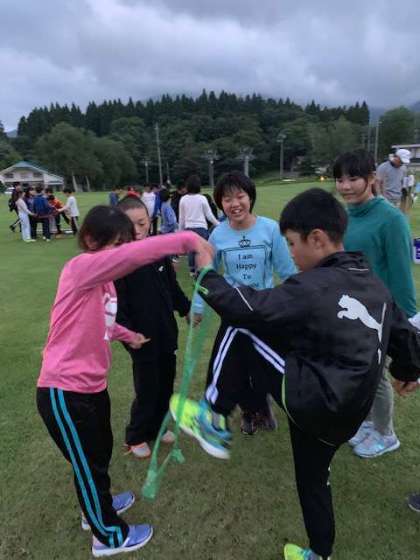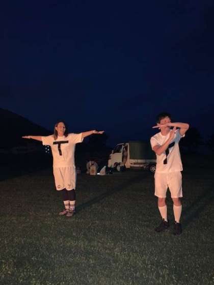 今日まで練習してきたスタンツを披露します。各班のスタンツのおかげで楽しいキャンプファイアーとなりました。付き添いの先生からのスタンツも…どなたかわかりますか?