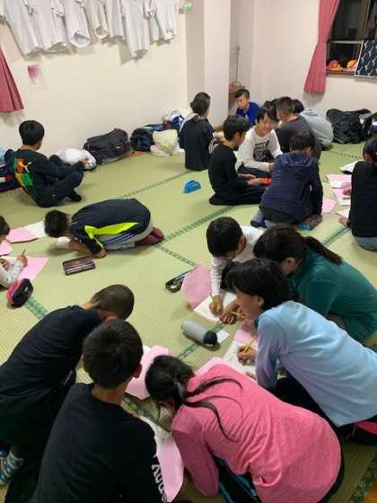 今日、1日の活動を振り返ります。生活班のリーダー活動班のリーダーがそれぞれの振り返りを集約して会議をしています。また、明日の活動の確認もして、明日へとつなげます。