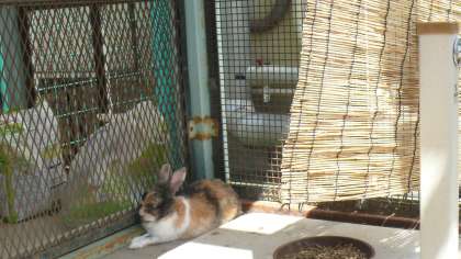 飼育小屋のジョンを見に行くと、暑さのあまり陰に隠れて、じーっとしています。その影の先に目をやると、簾(すだれ)がかけてあります。この暑さを乗り切るために、ジョンにも涼しくすごしてもらえるようにと、用意されたのでしょう。そのおかげで、ジョンも少しは、涼しくすごせていることでしょう。学校が始まるまで、あと10日です。児童のみなさん、宿題は終わっていますか?残りの夏休みを楽しく過ごして、元気な顔を見せてくれることを楽しみにしていますね。