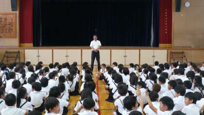 今日から2学期が始まりました。始業式で、夏休みが短かった。もっと休みたかったと思う人と尋ねるとほとんどの児童が短かったと答えました。もっともっと休みたかったのでしょうね。