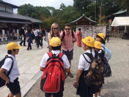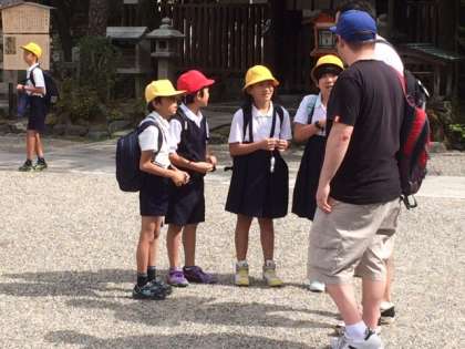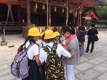 八坂神社に到着したら、さっそく「今日の遠足の大きな目標」を実施します。