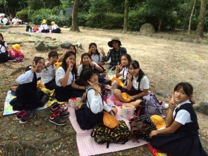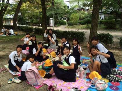 インタビュー活動前半が終了して、八坂神社から円山公園へ移動して、お弁当を食べました。後半に向けて、エネルギー充電です。