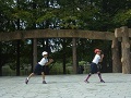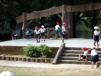 お弁当を食べて、おのおのが好きな遊びをしました。もっとドングリを拾いたい児童。野外ステージでダンスをする児童。パフォーマンスをするなど、楽しい時間を過ごして学校に帰ってきました。