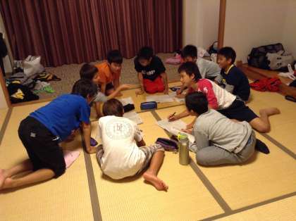 各部屋での1日の振り返りとロビーでリーダー会をして、振り返りと朝の確認会をしました。
