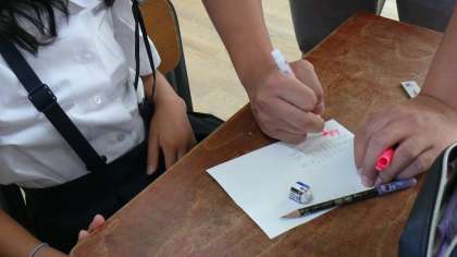来年度の新学習指導要領の本格実施を前に、今年度は「移行期間」として、3,4年生で外国語活動、5,6年生で英語学習を進めています。