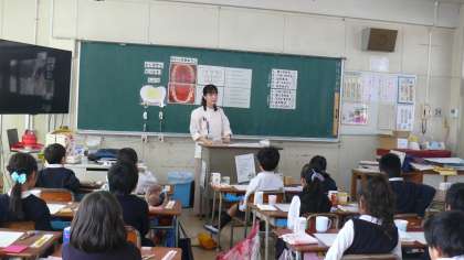 今日は、2年生が歯科衛生士の先生による歯みがき指導を受けました。