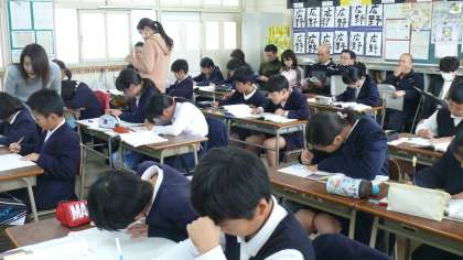 5年生の「注文の多い料理店」を題材に5年生が研究して公開授業してくれたものを、教員全員で参観し、放課後の討議会でより教材の深い理解や授業の仕掛けや工夫を話し合いながら、教員一人一人の授業力アップにつなげていく研修です。教員が授業力をつけることで、子どもたちに「いい授業」を提供できるように努めています。