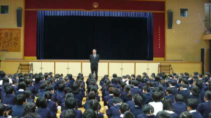 3学期は、短いけれども大事な学期であることをお話しました。1年間のがんばりや習得したことを上手にまとめてとしていきましょう。上手にまとめることで、次へいいのスタートができること。そのためには、短い期間だからこそ、一日一日を大切にして頑張りましょうと伝えました。6年生は、6年間の集大成を目指して、全員が悔いなく胸を張って卒業していこうということ。大事な大事な3学期です。学校も子どもたちの指導、サポートに全力を注ぎますので、お家の皆さんと一緒に子どもたちの育成にご協力ください。