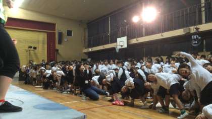 子どもたちは劇の中で使用する待雪草を作ったり、9月に行ったワークショップで体験した歌や振付を覚えたりして準備してきました。そして、役者のみなさんと一体となって、講堂いっぱいに待雪草を咲かせ、体を動かしながら歌を歌い、楽しみました。