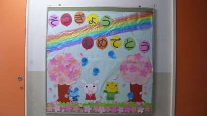 さて、今日のホームページは、前回に引き続き1年、5年の階段掲示です。こちらの掲示板にも卒業をお祝いする気持ちがあふれています。6年生の皆さん、楽しみにしていてください。