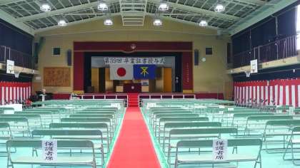 18日(水)に卒業式を予定しています。休業中の卒業式の開催で、来賓や在校生もなく簡略化した形式ではありますが、少しでも6年間の集大成としての卒業式をもって、小学校から中学校へ進む門出であり、儀式でありいい節目を作り、子どもたちが前に自信と誇りをもって進める式にしたいと教職員が願っています。なので、今日は朝から教職員総出の会場準備をしました。できることは教職員でして、子どもたちにとって、できる限りの中での最高のものにしたいと思います。式場の準備の途中です。