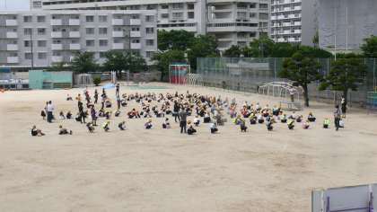 学校休業の最中に実施している「登校日」も2週が終わり、来週は、5月最終週です。来週は、6年生のみ週3回の3時間授業になります。1年生から5年生までは2時間で下校します。来週以降は、1〜5年生までの集団下校になります。そのために、今週は、入念に下校グループの確認をしました。集団下校の確認の様子です。