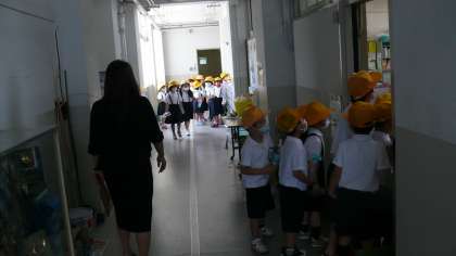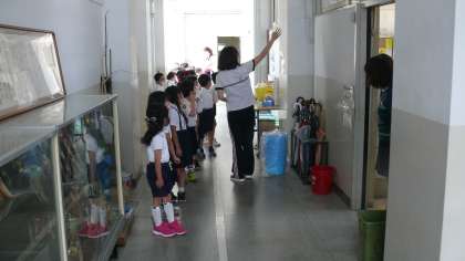 給食も始まり、チャイムの合図も戻ってきて、学校らしくなってきました。1年生は、今日、「学校たんけん」らしきものに出かけました。職員室、校長室、給食室など、少しずつ学校の施設や教室を見に行くことができるようになってきました。