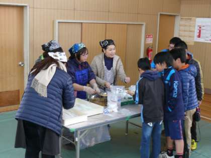 ついたもちをその場で、きなこやのりをPTAの人たちがつけてくれて、やわらかいつきたて持ちを食べる醍醐味は、絶品です。