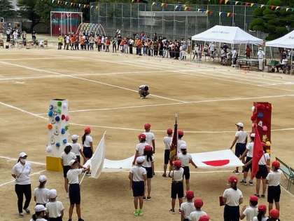 このような状況のなか、1学年ながらも立派にトラックを一周し、児童席の児童にもその姿を見てもらうことができました。この運動会を盛り立てていこうという気持ちが伝わっていました。