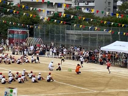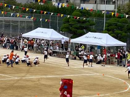 5年生のリレーです。バトンバスもスムーズに走りきることができました!