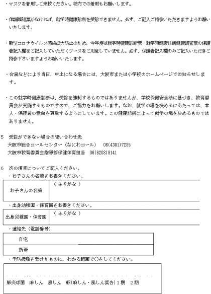 「令和3年度入学児童 就学時健康診断」です。