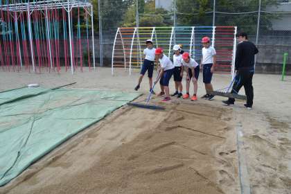 写真は立ち幅跳びの様子ですが、担任の先生だけでなく自分たちでも砂場を整地したり、友だちに声かけしたりと熱心に取り組む姿がみられました。