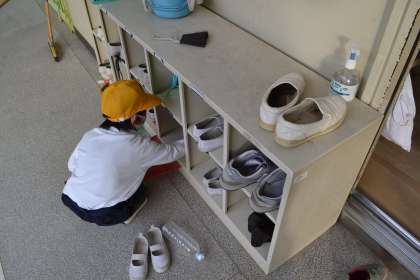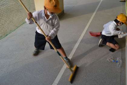 確かに1年生の教室の前は運動場と接しているため、掃除の時間だけでは、なかなかきれいにならないのです。