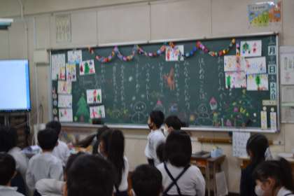 1年生はクラスでお楽しみ会と栄養教室をしていました。食べ物について、楽しくまなんでいました。