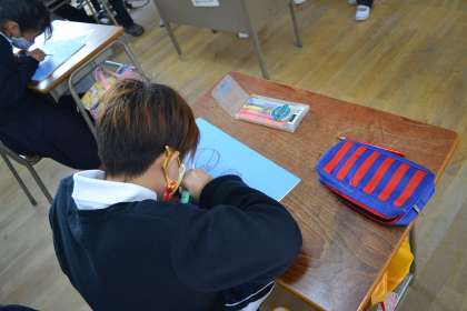 5年生も図画工作科で版画を制作しています。日常の自分を題材に細かいところまで、下絵を描いていました。