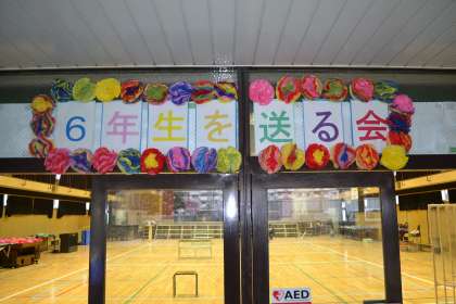 例年ならば、全校児童が講堂に会して学年ごとにお祝いの催しをしますが、今年度は、卒業生と在校生代表の5年生だけになってしまいました。
